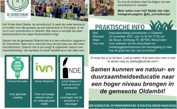 Bron: VOORJAARSKRANT Karin Starke is actief om de gemeente te vergroenen en dat doet ze samen met de kinderen van de Oldambtster scholen. Ook Karin heeft het voorjaar in het hoofd en nodigt ze de scholen uit kinderen plantjes te laten opkweken die in de meimaand in de schooltuin geplant […]